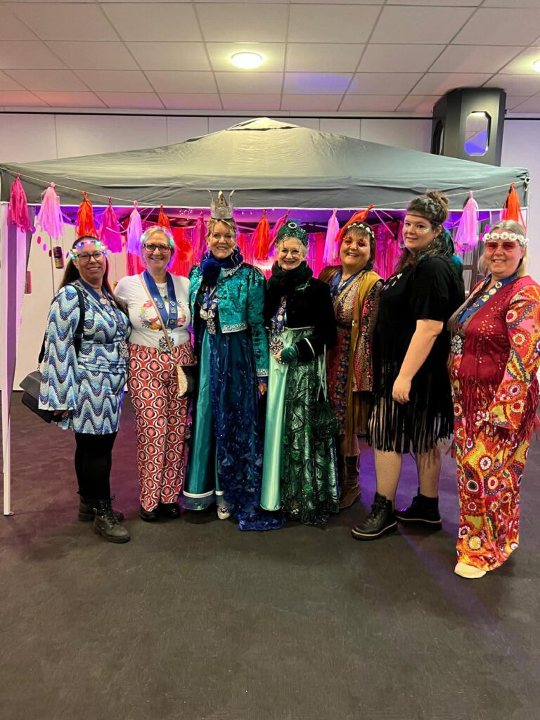 Am Freitagabend trennten sich die Wege der beiden Paare – und zwar ganz im Sinne der fastnachtlichen Tradition. Während die Damen Prinzessin Caroline I. und Hofdame Sabine die Weibersitzung der VFCG besuchten, feierten sie dort gemeinsam mit Weiberkomitee und Korsettgeschwader. Mit einer ganzen besetzten Tischreihe war schnell klar: Diese Runde war gekommen, um das Programm der „Weiber vom VFCG“ lautstark und ausgelassen zu begleiten.